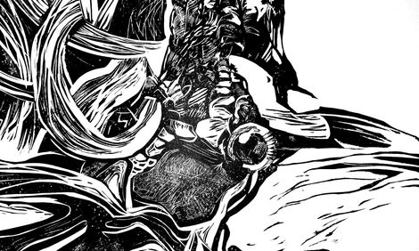 A linocut is a relief print that involves cutting out an image or pattern on linoleum and transferring it to the surface using printing ink. Those parts of the project that will remain white are cut out: the process of cutting on linoleum is somewhat similar to drawing with a white pencil on a black background. The matrix acts like a stamp or seal, leaving a mirror image on the surface. If the background is to be white, the prepared linoleum pattern or image must be cut out of the matrix. The technique, used since the early 20th century, is similar to longitudinal woodcut (longo). Instead of a block of wood, a piece of linoleum is used in which the pattern is cut out using woodcut cutters.